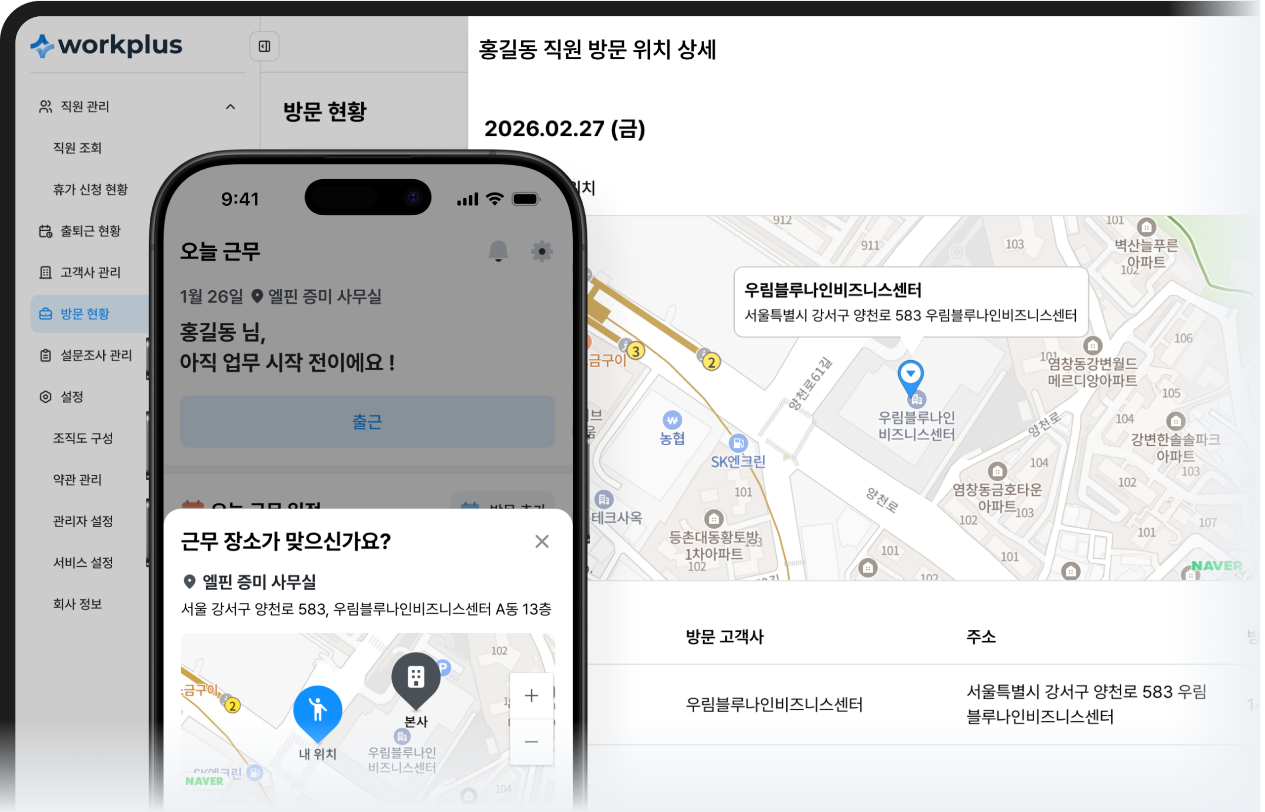 근태, 방문 위치 정보를 정확하게 확인하고