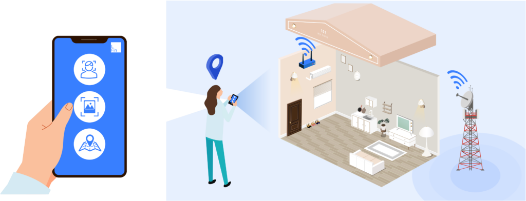 이동통신기지국 + Wifi + GPS + AI 공간 이미지 결합 기반 인증